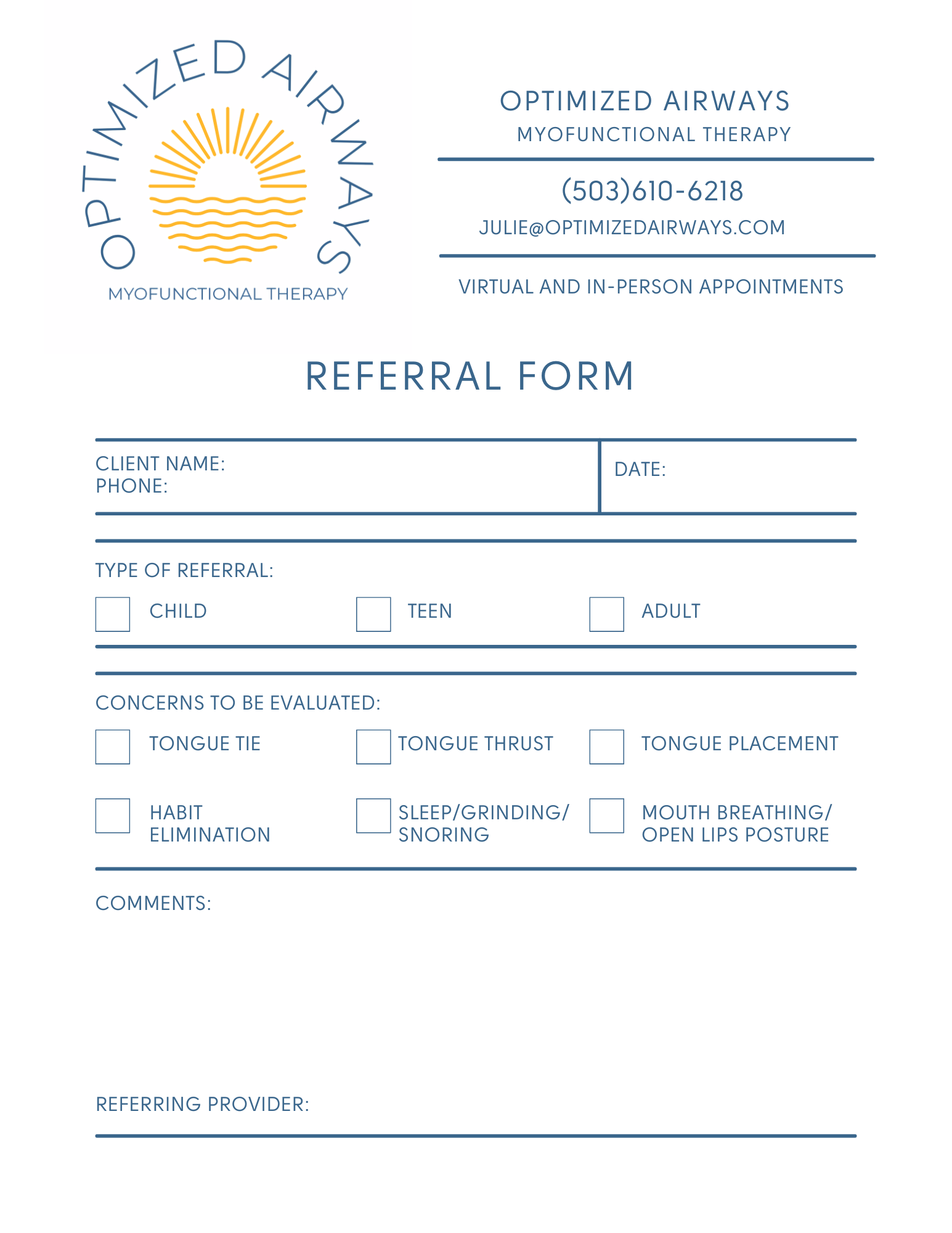 San Diego and Online Therapy- Optimized Airways Referral Form (pdf)Download